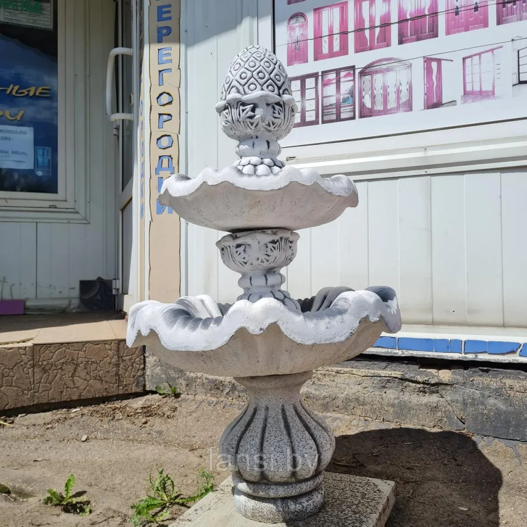 Фонтан изготовлен из бетона и окрашен фасадной краской.